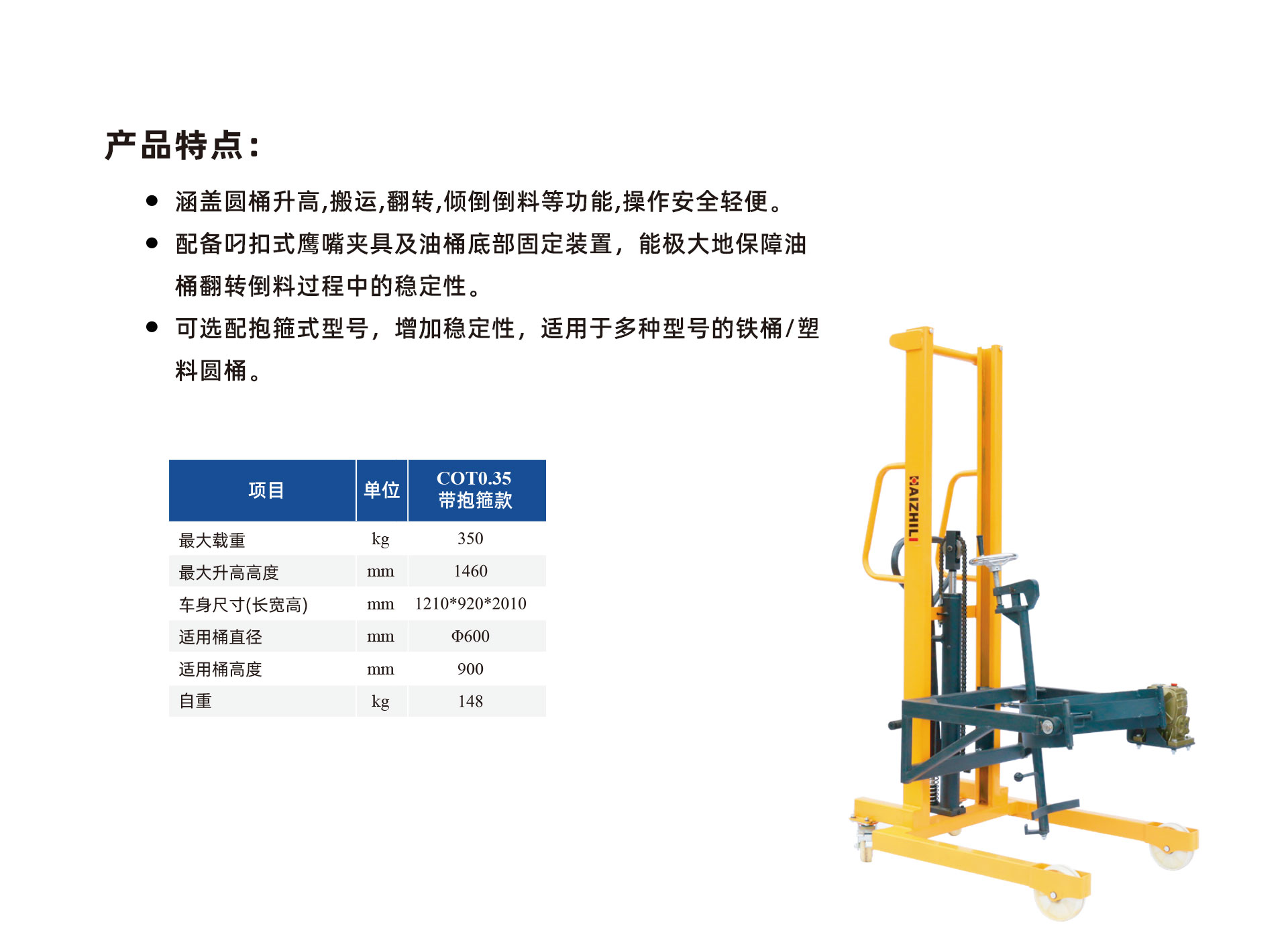 用于工廠、工業(yè)區(qū)域等場所,用于搬運,翻轉(zhuǎn),傾倒油桶、化學品桶或其他桶型貨物